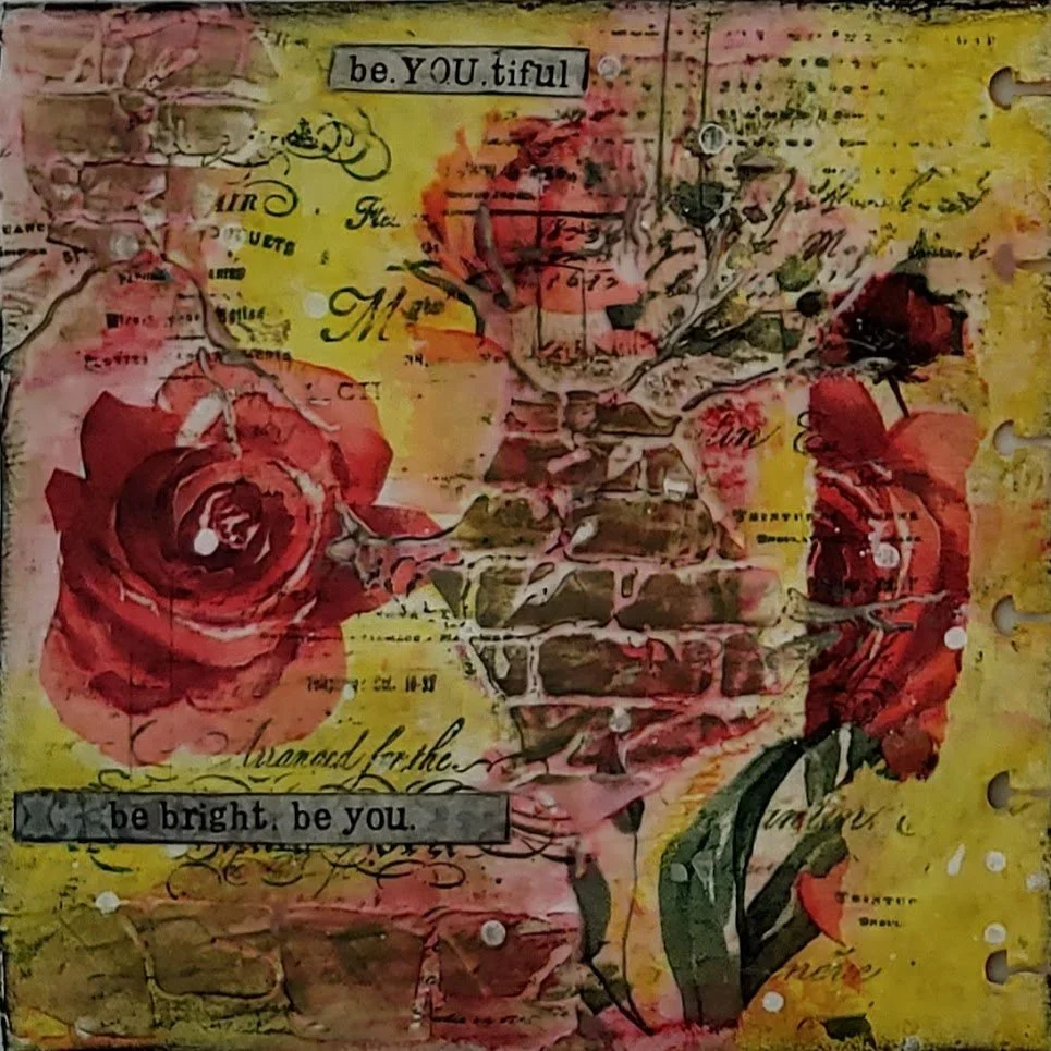 I created this double spread in my 6 x 6 homemade watercolor disc bound journal.