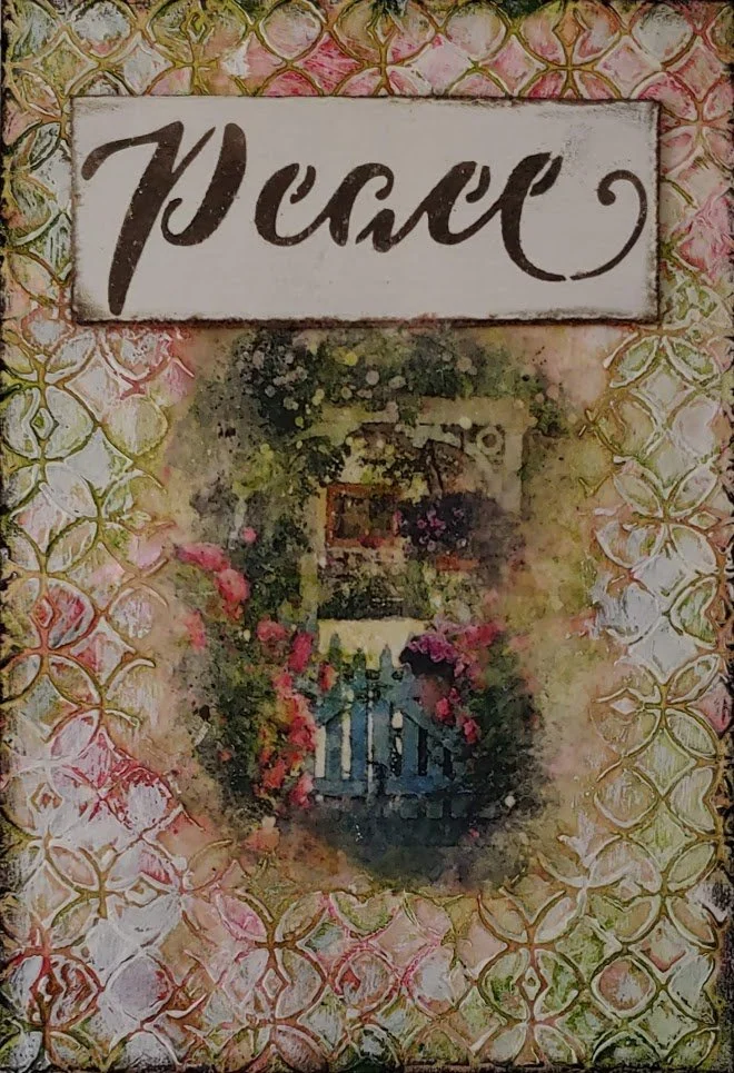On one wall in my studio, I have a saying that says - "Peace...it does not mean to be in a place where there is no noise, trouble or hard work. It means to be in the midst of those things and still be calm in your heart." I had glanced over at it one day while I was in the studio and looking for inspiration. It occurred to me how I had allowed peace to be sacrificed at the feet of the media, social media & news in general.