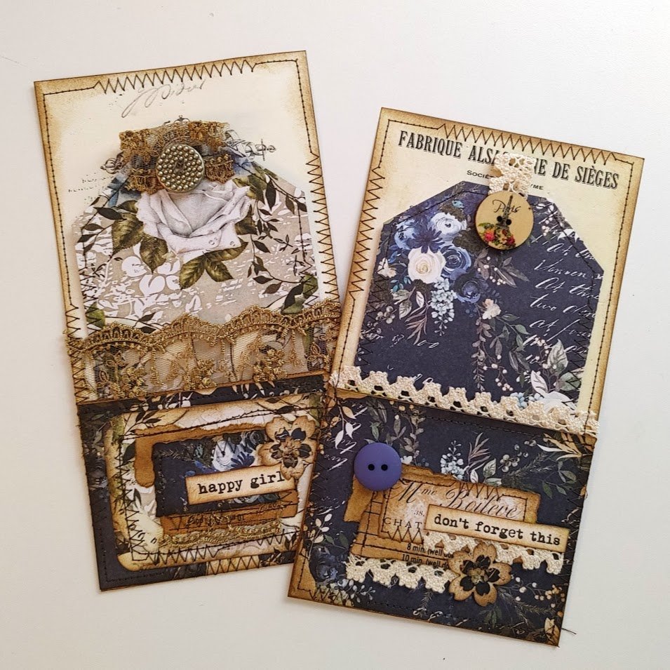 Hello friends, I purchased this Antique French Cheques some time ago and was chomping at the bit to use them. I am so pleased with how they turned out. I print on 49 lb copy paper. I do not like the thinner copy paper for creating ephemera. I want items that are structurally sound and will hold up to use in a journal. I used Georgia Blues Scrapbook paper from Prima Marketing. I was unable to link it as Scrapbook.com doesn’t appear to have it at this time.